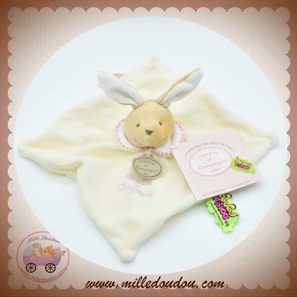 DOUDOU ET COMPAGNIE LAPIN PLAT ECRU COL RAYE ROSE SOS