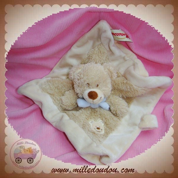 Maximize NICOTOY DOUDOU OURS BOUCLETTE PLAT MARRON BLEU ECHARPE SOS